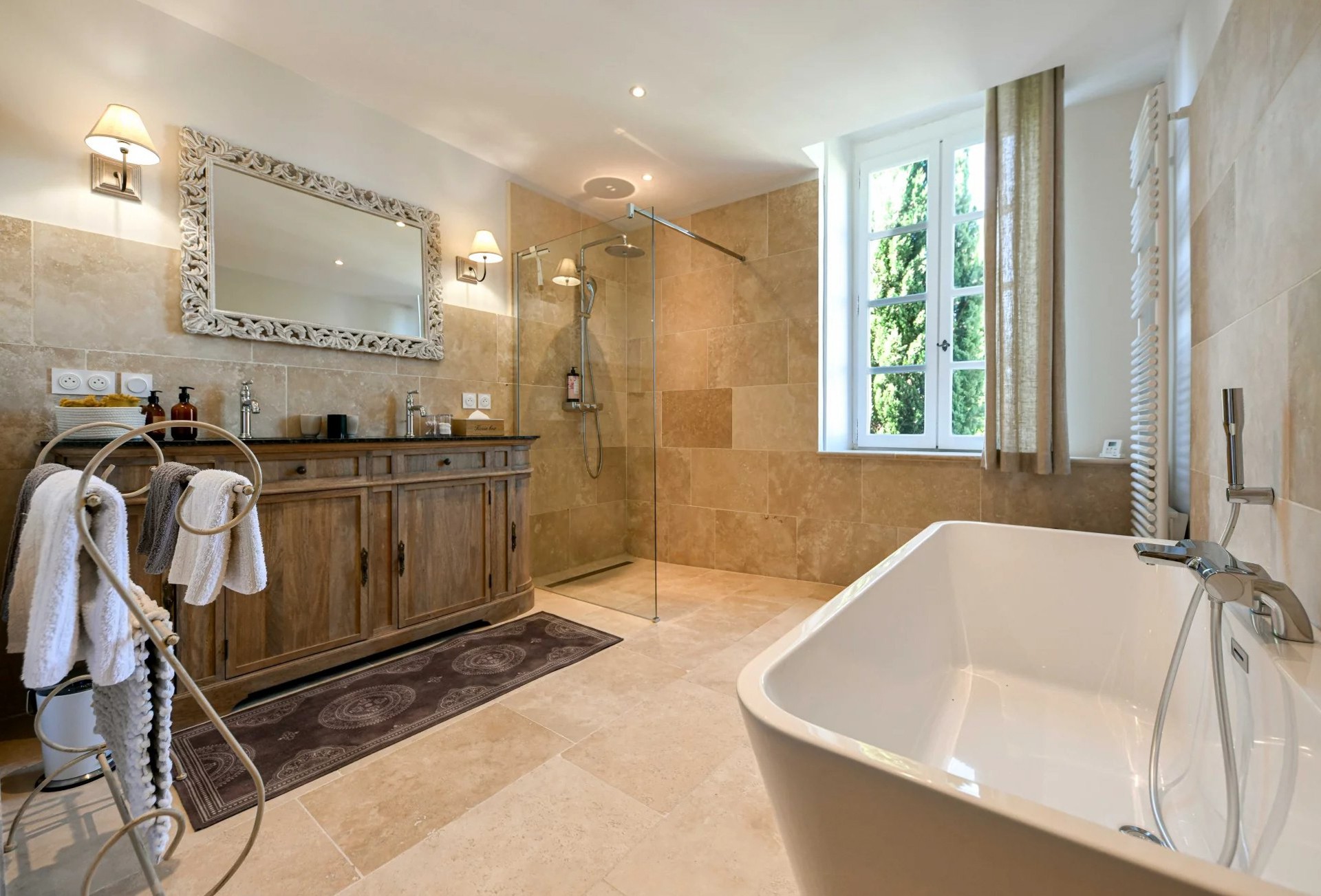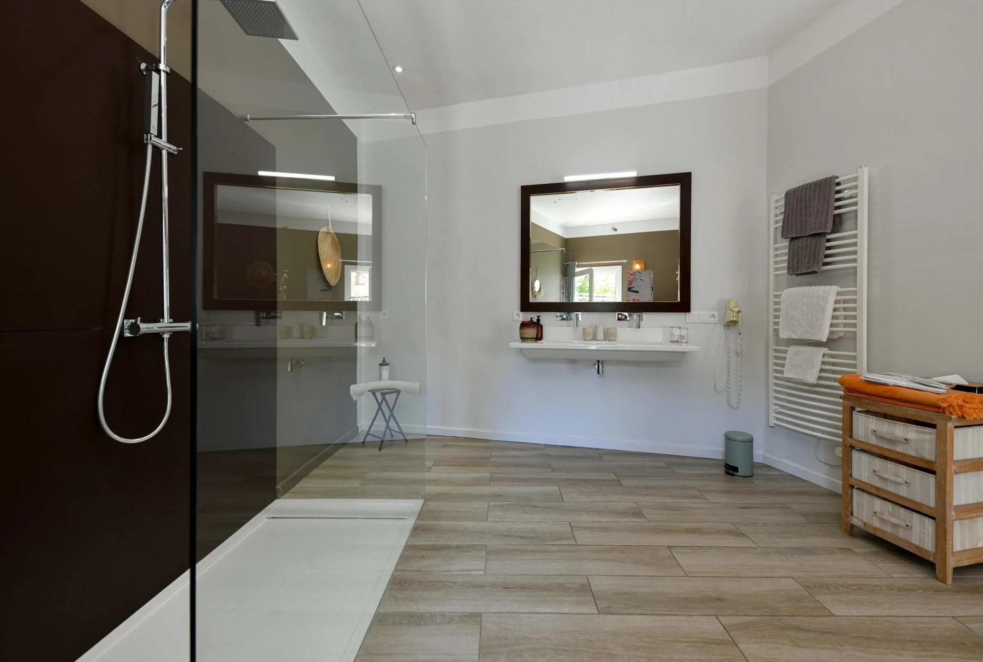 • Due ulteriori suite, una delle quali con accesso a una terrazza con vista sulla piscina, ciascuna con bagno privato.