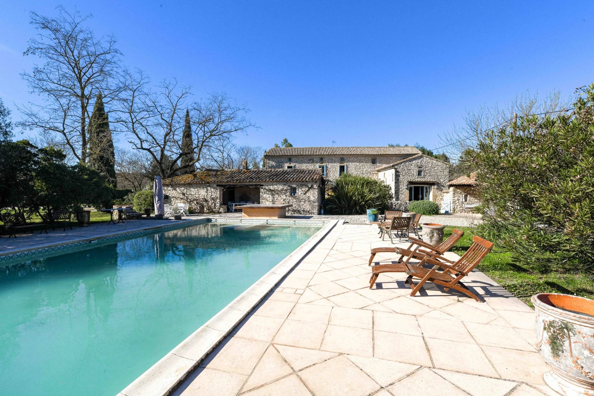 Mas provenzale restaurato di 330 m² su tre livelli, immerso in un ampio contesto verde, in posizione tranquilla e riservata a circa 10 km da Uzès.