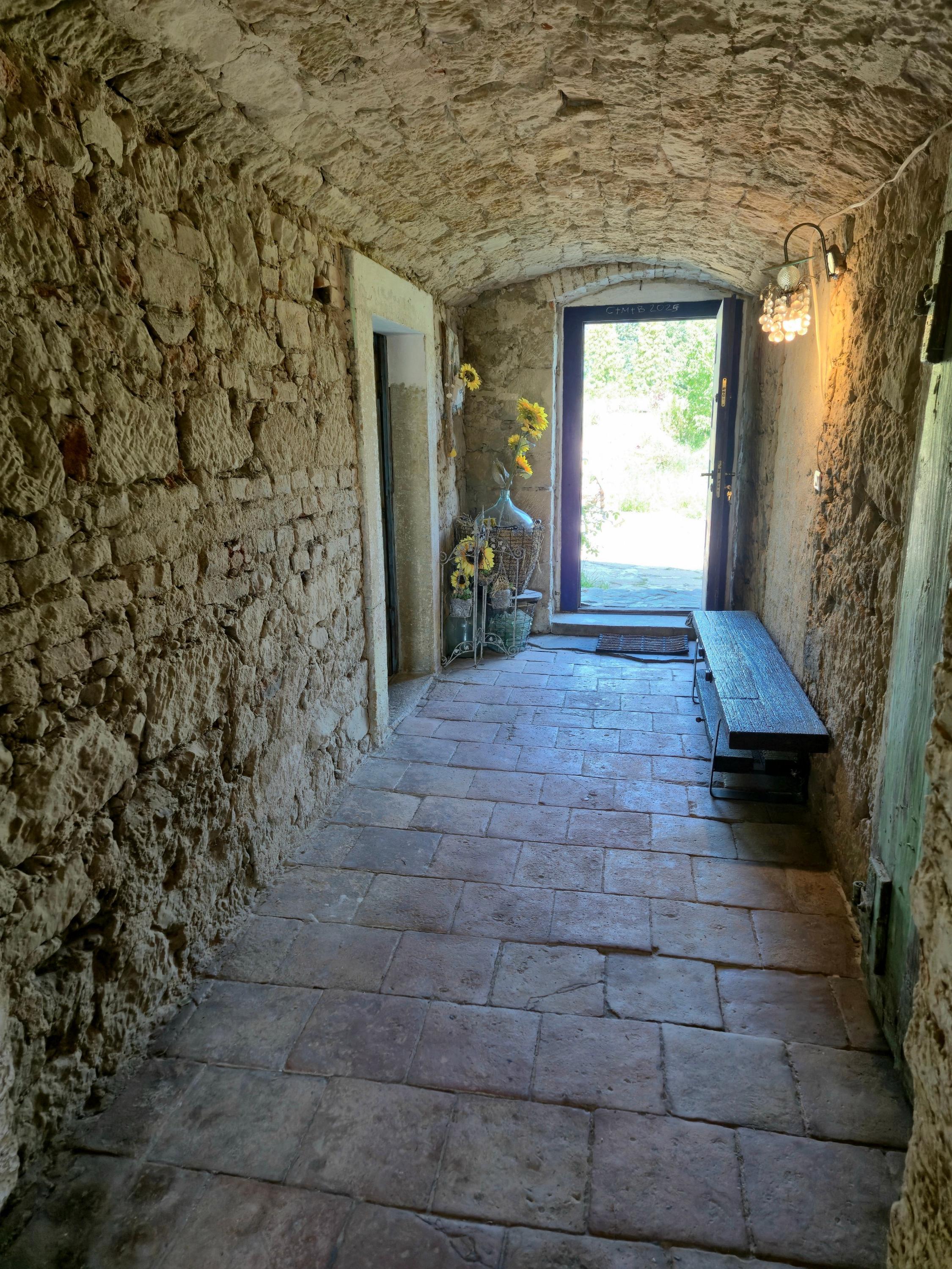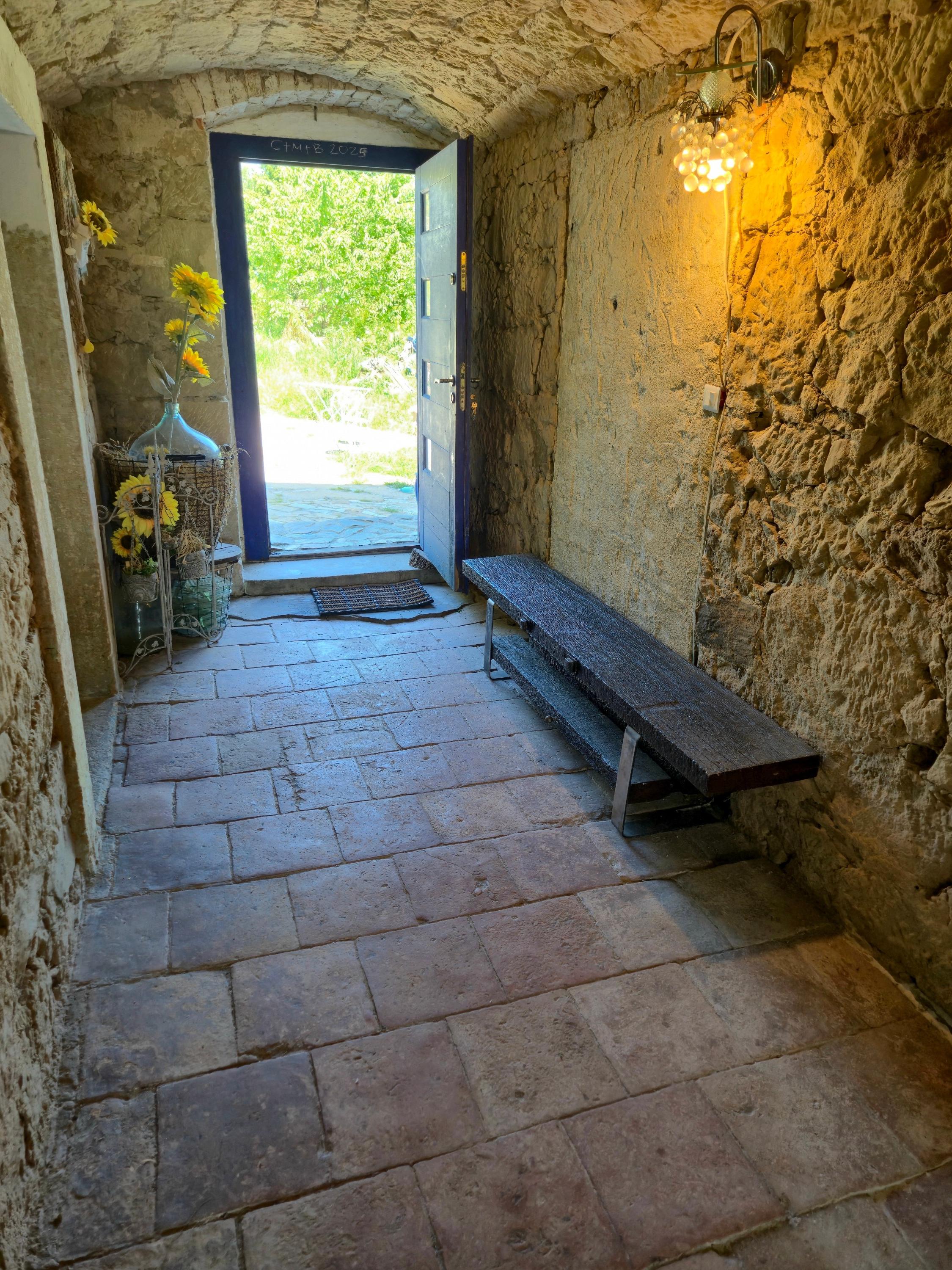 La proprietà dispone di cantina. Al piano terra si trovano la cucina, la sala da pranzo, il bagno con doccia e il locale lavanderia. Al primo piano ci sono due camere da letto, un bagno con vasca, una sala giochi, un guardaroba, uno studio e un angolo lettura. La proprietà include una stalla con volte a crociera, attualmente in fase di ristrutturazione per essere convertita in un soggiorno con area spa. Accanto alla casa ci sono rovine in pietra, un cortile dove trascorrere piacevoli momenti.