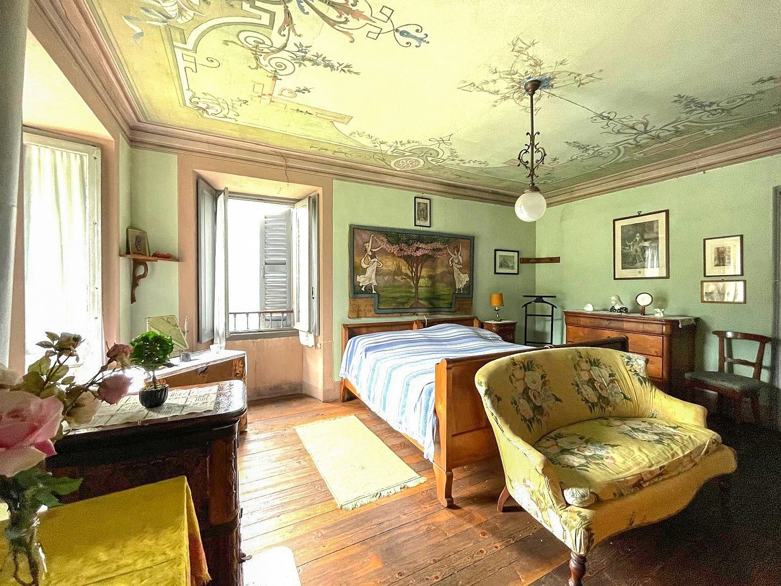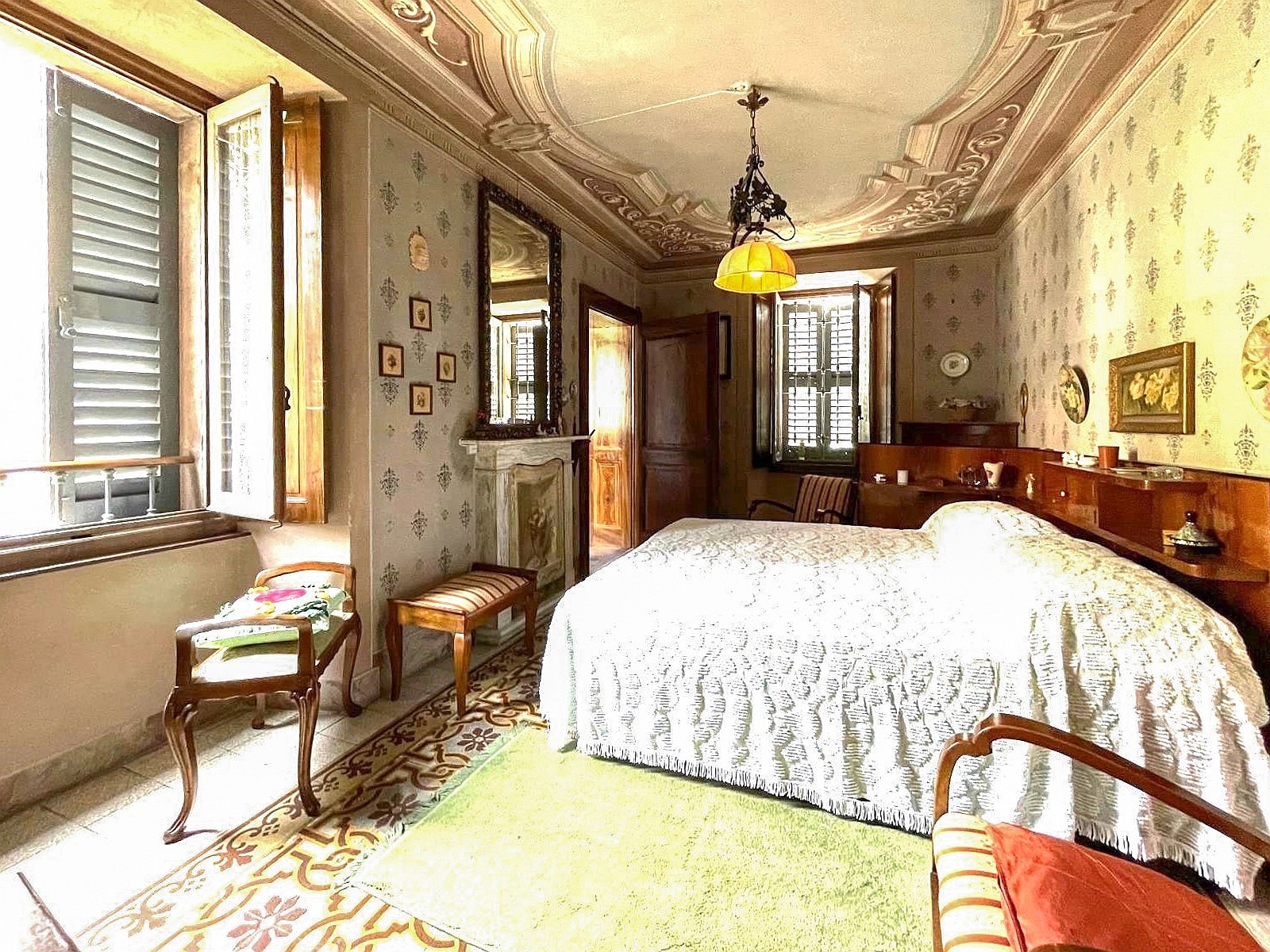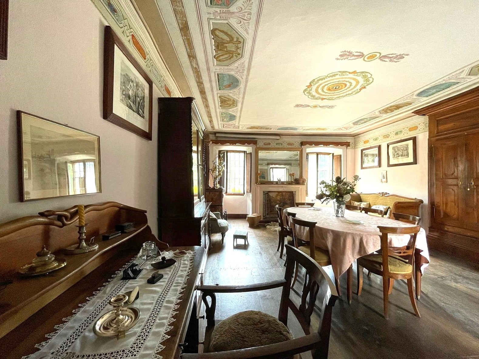 Sala d'ingresso Camino Balcone Affreschi Cortile