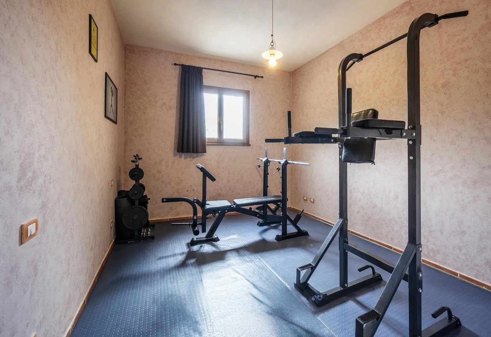 La cucina è completamente attrezzata e studiata per chi ama organizzare cene e show cooking privati, mentre la villa dispone anche di una palestra attrezzata per il benessere quotidiano.