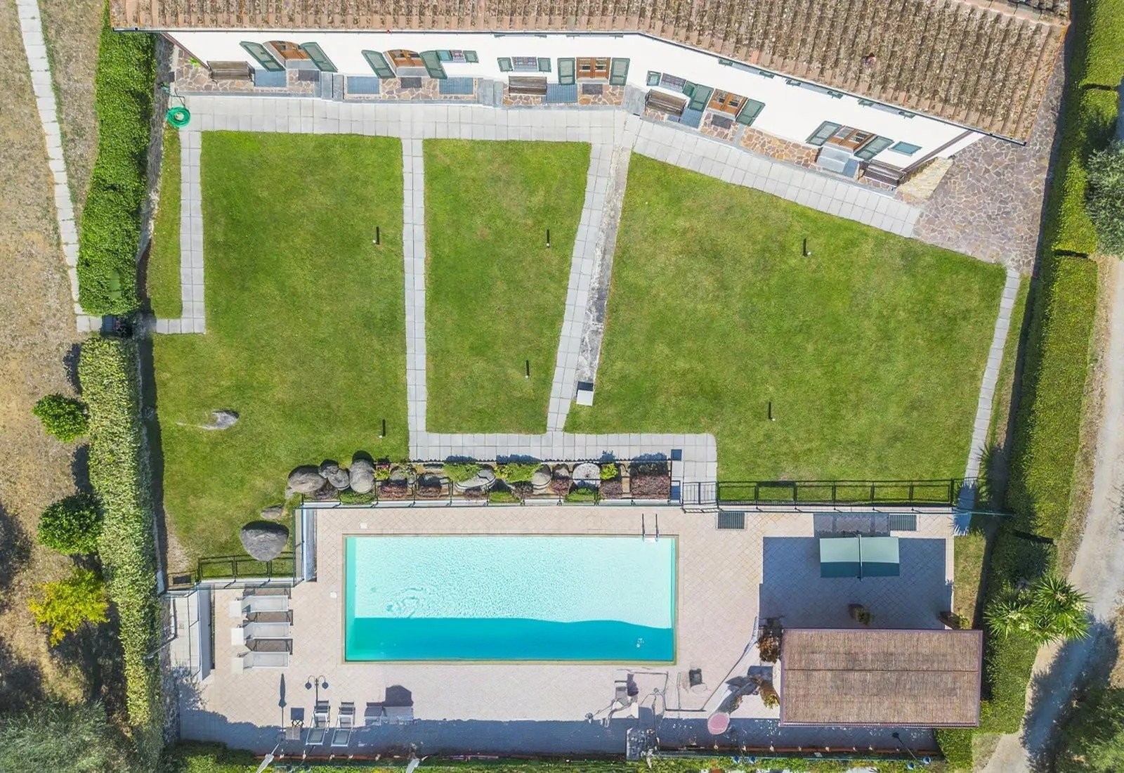 - Spazi esterni privati: 10 ettari con oliveto (~500 alberi), frutteto, pineta