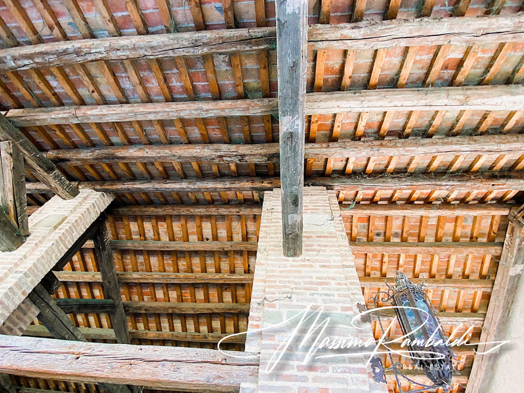 Ampio salone centrale con travi a vista
