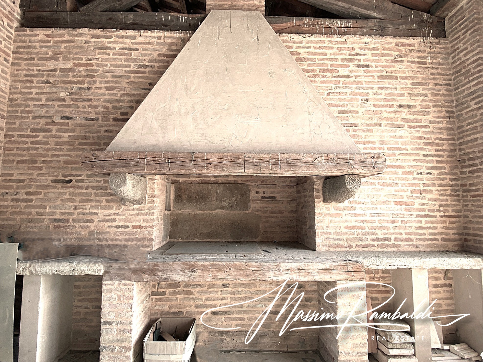 Annesso con camino in pietra locale e marmo di Verona