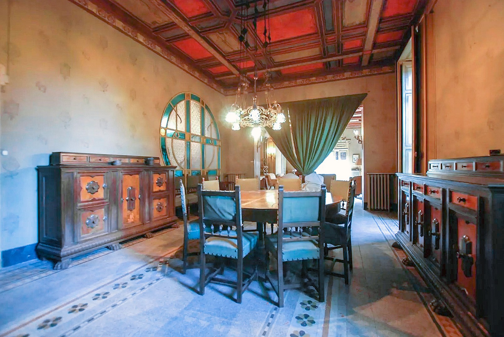 Di particolare pregio sono le finiture originali dell'epoca, soprattutto una scenografica scala in marmo, a cui danno una particolare incidenza di luce le vetrate di varie forme, simili a quelle di una chiesa. Da qui si accede al primo piano con la zona notte e le sue quattro camere matrimoniali, quattro bagni e due camere singole. Al piano rialzato si trovano una lavanderia e un bagno. Al secondo piano si trova la mansarda aperta.