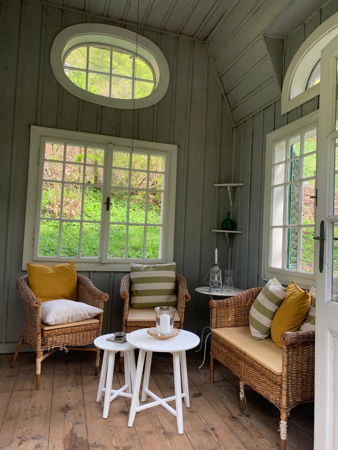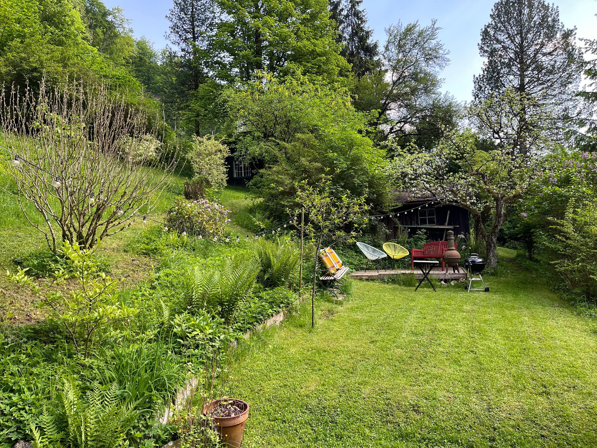 Il giardino comprende una glorietta storica del XIX secolo, due depositi per il giardino e un padiglione in legno coperto. La cantina privata offre uno spazio ideale per momenti di relax o convivialità all’aperto.