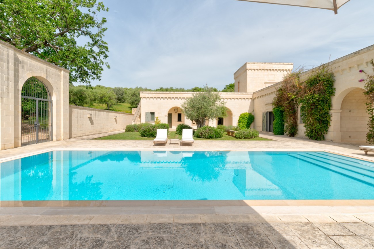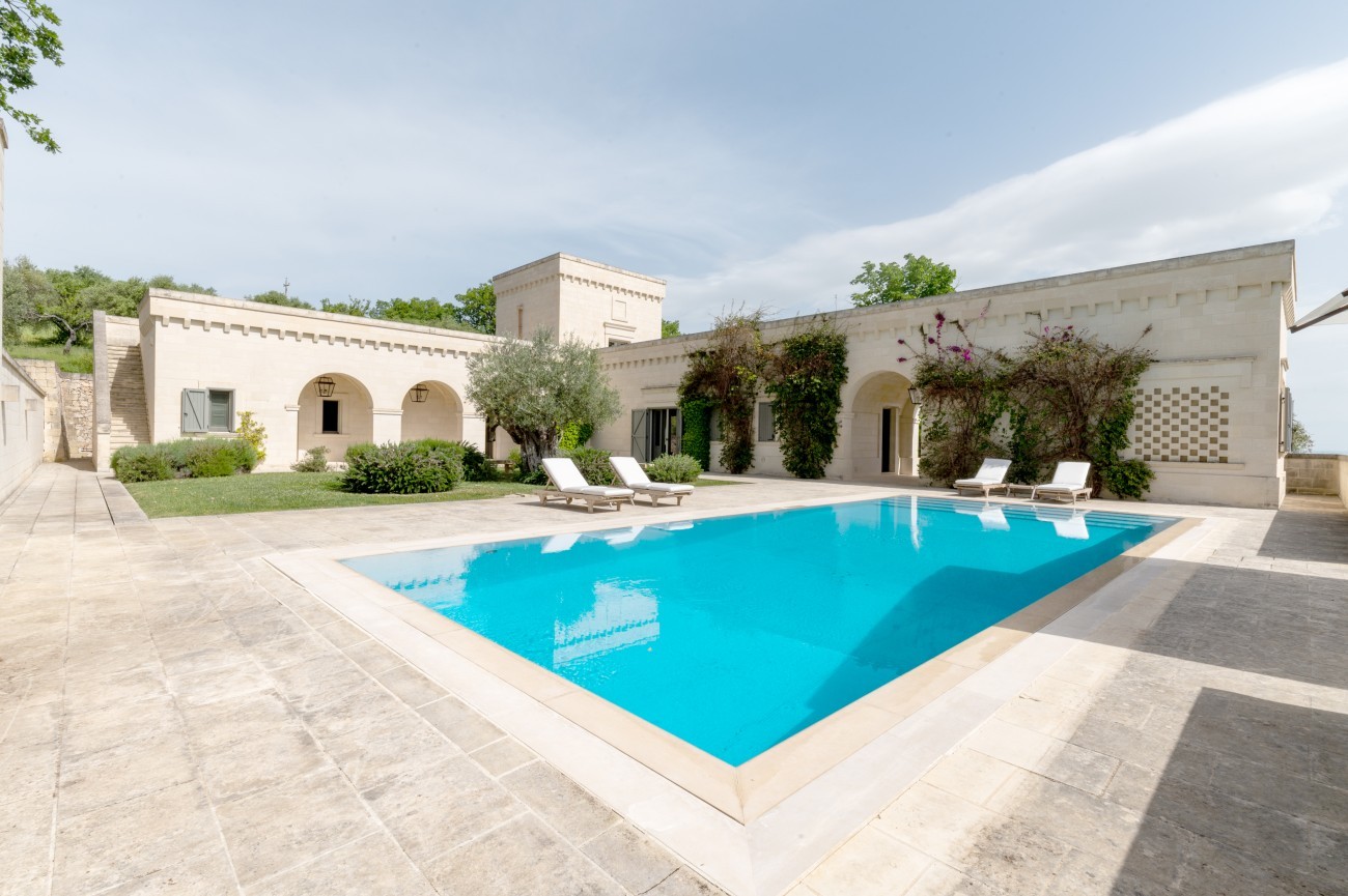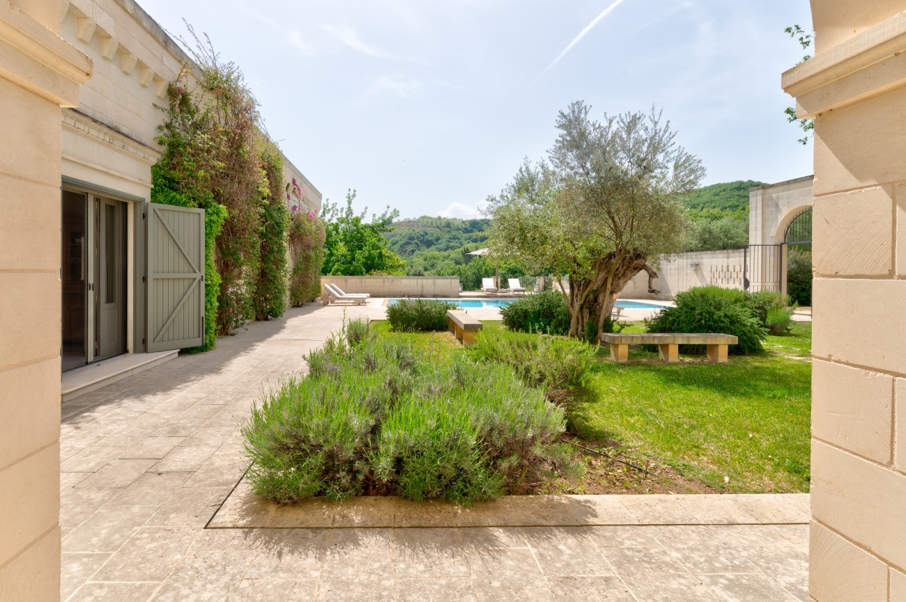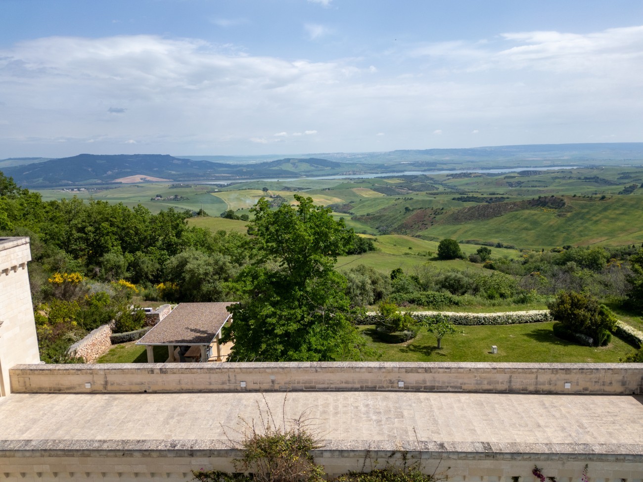 La villa si estende su un terreno di 4,2 ettari con uliveti produttivi e un giardino curato, con vista panoramica sul paesaggio della Basilicata.